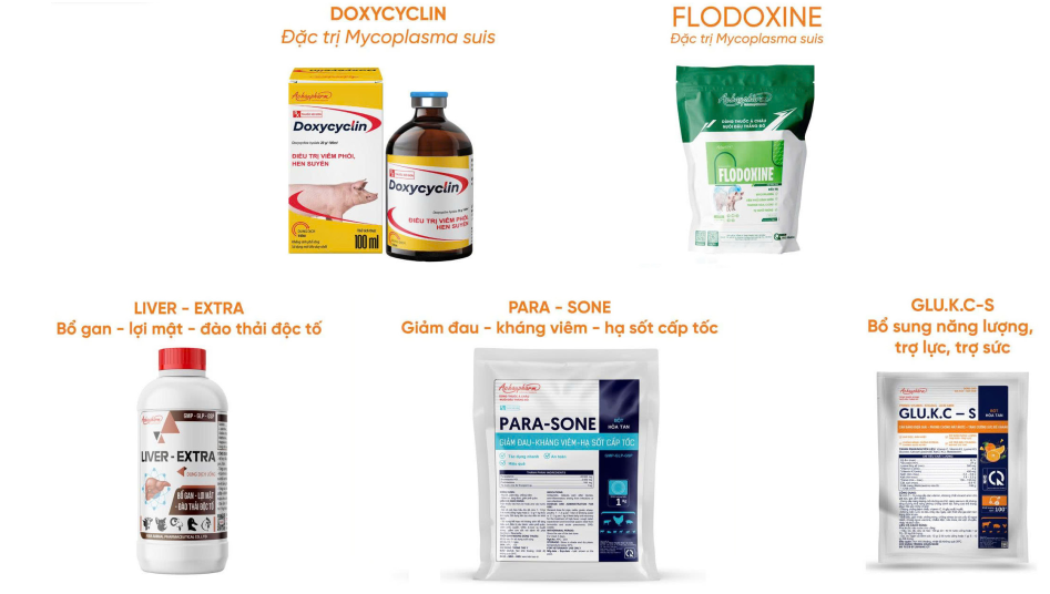 + Thuốc đặc trị bệnh do vi khuẩn đường máu M. suis: DOXYCYCLIN kết hợp với FLODOXINE.