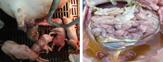 Heo nái sảy thai, heo con chết; Tràn dịch xoang bụng, ngực, bao tim