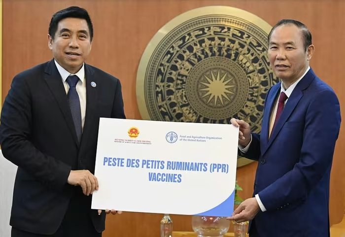 Đại diện FAO đã trao vaccine dịch tả của dê và cừu cho Việt Nam. (Ảnh: Bảo Thắng).