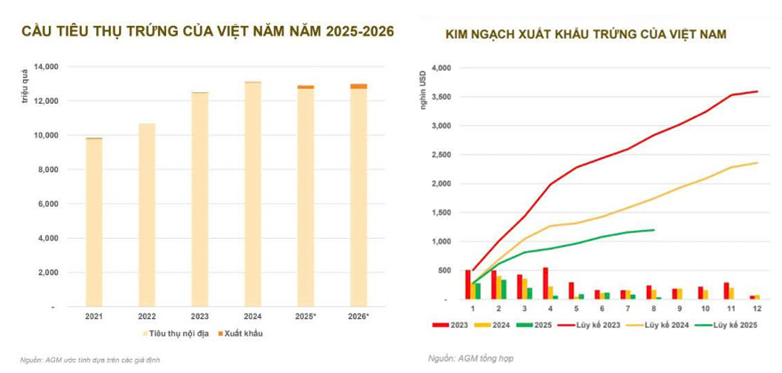 Khoảng cách lớn giữa mức tiêu thụ của Việt Nam và mặt bằng chung thế giới, đặc biệt trong bối cảnh nhiều quốc gia châu Á duy trì tốc độ tăng trưởng mạnh mẽ về nhu cầu trứng cho thấy, tiềm năng mở rộng thị trường trứng trong nước vẫn còn rất lớn nếu ngành chăn nuôi tiếp tục nâng cao chất lượng, đảm bảo an toàn và đa dạng hóa sản phẩm. Theo dự báo của VPA, với công suất các dự án đã và đang vận hành, sản lượng trứng trong vài năm tới có thể đạt 25-26 tỷ quả. Tuy nhiên, mức tiêu thụ trong nước hiện chỉ đạt 185-190 quả/người/năm, thấp hơn nhiều so với mức trung bình toàn cầu 300-350 quả/người/năm. Khoảng cách tiêu thụ này được xem là “mỏ vàng” tăng trưởng mà ngành trứng Việt Nam vẫn chưa khai thác hết.