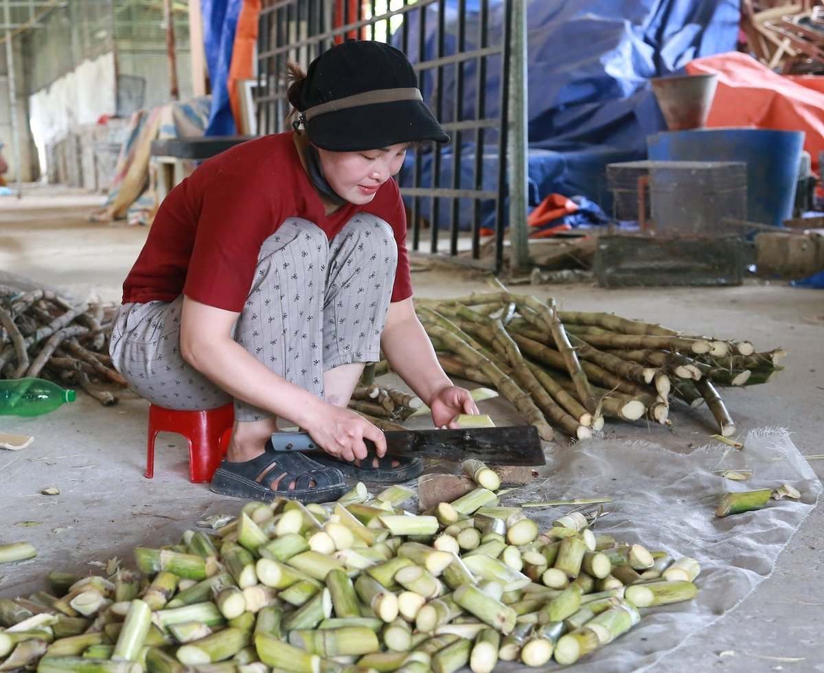 Chị Hoàng Thị Thùy Linh chuẩn bị thức ăn cho dúi gồm tre, nứa, ngô hạt, mía… rất sẵn có. Ảnh: Thanh Ngà.