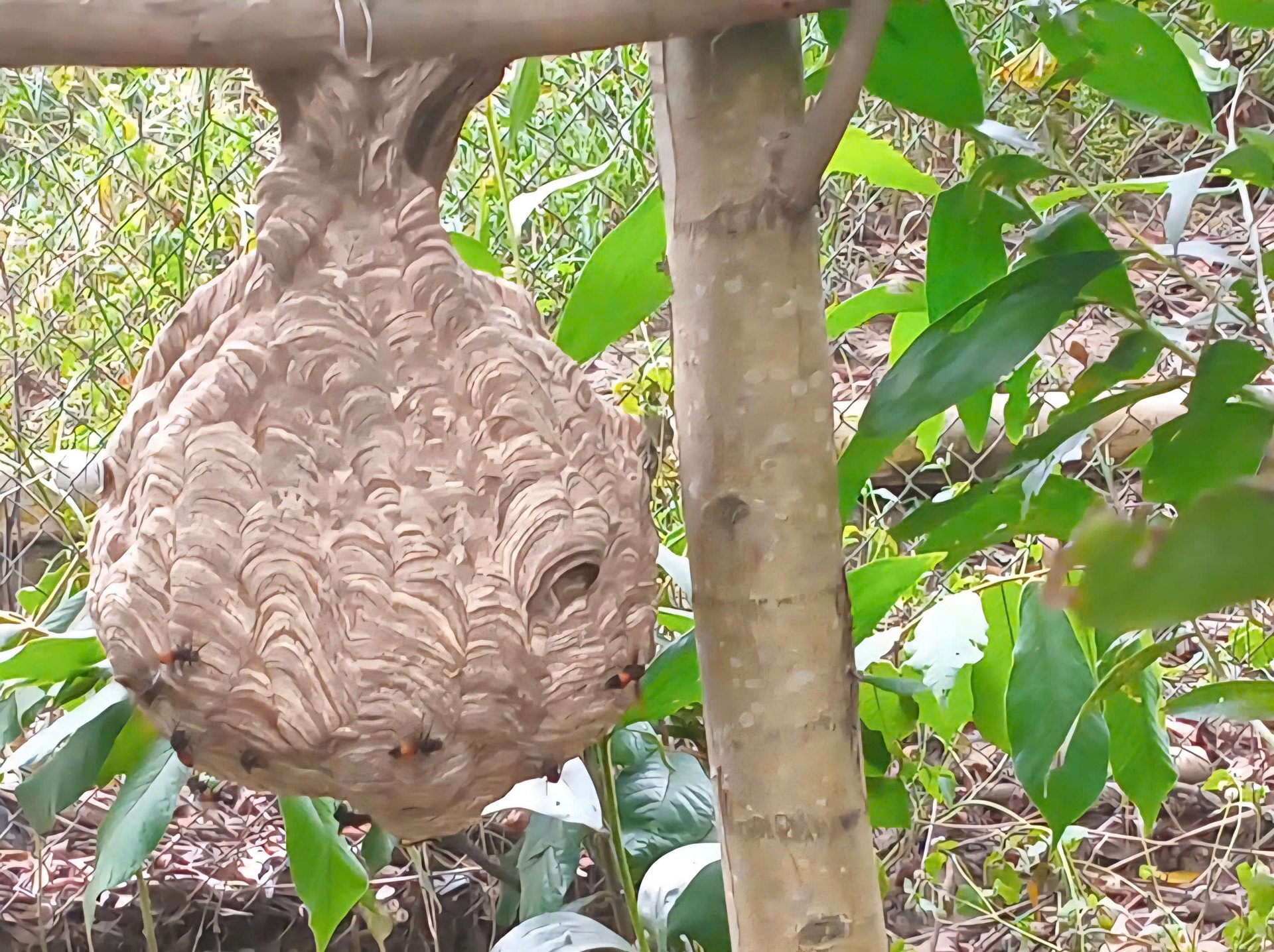 Một tổ ong vò vẽ treo trong vườn rừng gia đình anh Ngô Văn Đức. Ảnh: T. Phùng.