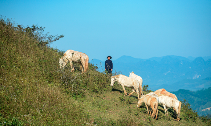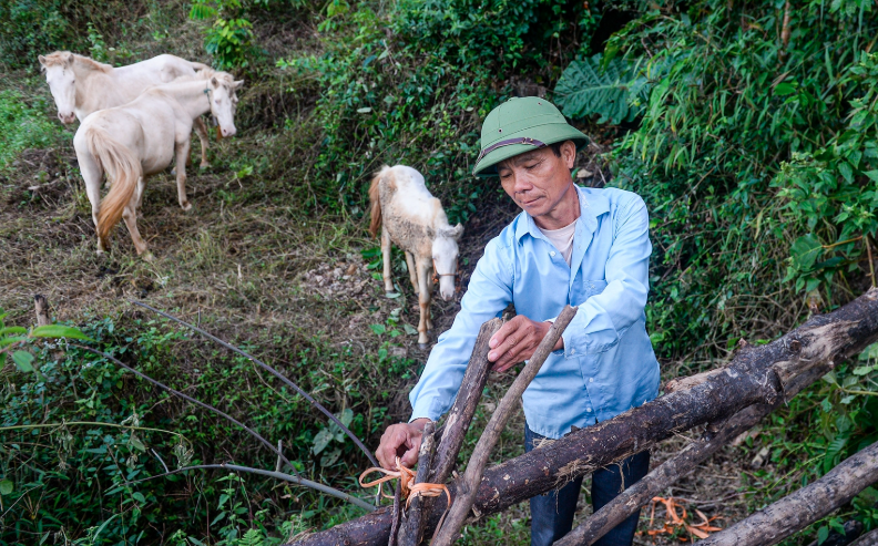 Ông Nông Đức Thơ với công việc chăn thả ngựa hàng ngày. Ảnh: Vũ Hải