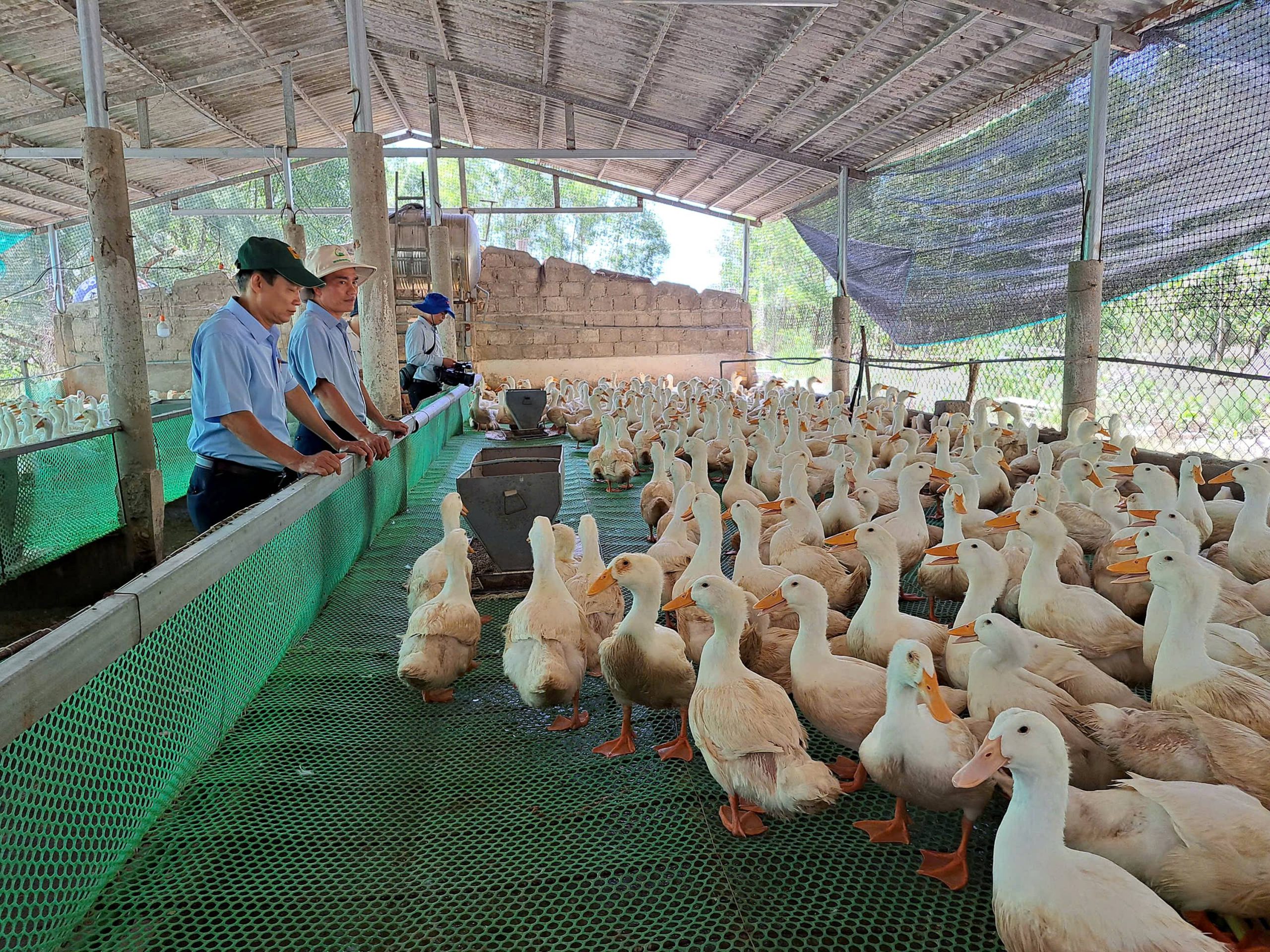 Mô hình nuôi vịt thịt giống mới trên sàn an toàn sinh học hỗ trợ liên kết tiêu thụ sản phẩm tại xã Triệu Cơ, huyện Triệu Phong – Ảnh: L.A
