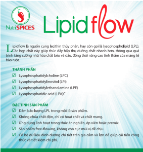 Lipidflow, một phần trong dòng sản phẩm cao cấp của Nutrispices, cung cấp nguồn lecithin thủy phân đậm đặc, giàu lysophospholipid. Lipidflow nâng cao: