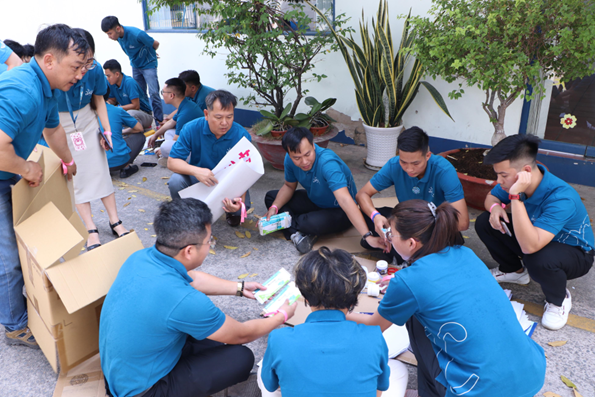 Không chỉ cập nhật những định hướng ESG & QHSE mới và lộ trình Net-Zero 2050, chương trình còn mang đến một sân chơi sáng tạo: Cuộc thi Tái Chế. Gần 50 CBNV chia đội, cùng “hô biến” giấy carton, vỏ hộp sản phẩm tưởng chừng bỏ đi thành hộp hồ sơ, khay bút, chậu cây mini đầy màu sắc và công năng. Không khí thi đua sôi nổi xoay quanh ba tiêu chí chấm điểm: hữu dụng – mỹ thuật – tỉ lệ tái chế.
