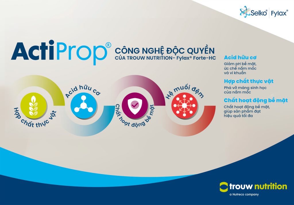 Công nghệ ActiProp được phát triển như một nền tảng giải pháp tích hợp cho quản lý độ ẩm và kiểm soát nấm mốc trong sản xuất thức ăn chăn nuôi. Công nghệ này kết hợp các acid hữu cơ, chất đệm, hợp chất quản lý độ ẩm và các hợp chất có nguồn gốc thực vật, tạo hiệu quả cộng hưởng trong kiểm soát vi sinh vật.