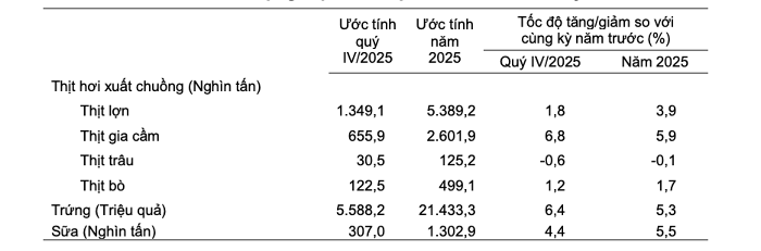 Sản lượng một số sản phẩm chăn nuôi chủ yếu (Nguồn: Cục Thống kê).