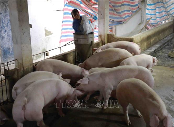 Chăm sóc đàn lợn thịt tại trang trại, tỉnh Phú Thọ. Ảnh tư liệu: Vũ Sinh/TTXVN