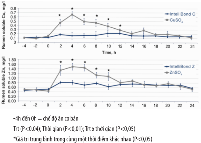 Nhiều nghiên cứu cho thấy, bổ sung Zn và Cu sunfat có thể làm giảm tiêu hóa xơ khoảng 2 điểm phần trăm, gây thiệt hại đến 0,5 kg sữa hiệu chỉnh chất béo/con/ngày giai đoạn đầu. Thay thế bằng khoáng Hydroxy giúp loại bỏ rủi ro này, tối ưu chức năng dạ cỏ và tăng lợi nhuận.