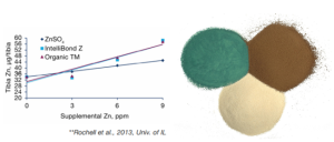 Hình 2. Khả dụng sinh học tương đối của các khoáng chất vi lượng Hydroxy (IntelliBond) so với các nguồn hữu cơ và vô cơ **. Thí nghiệm kiểm tra hàm lượng Zn (ppm) bổ sung và hàm lượng Zn (µg) đo được tại xương chày