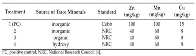 Một nghiên cứu của Đại học KwaZulu-Natal (Nam Phi) cho thấy, việc sử dụng các nguồn khoáng vi lượng khác nhau, đặc biệt Zn, Mn và Cu, ảnh hưởng rõ rệt đến tăng trưởng và lượng kim loại thải ra môi trường trong chăn nuôi gà thịt.