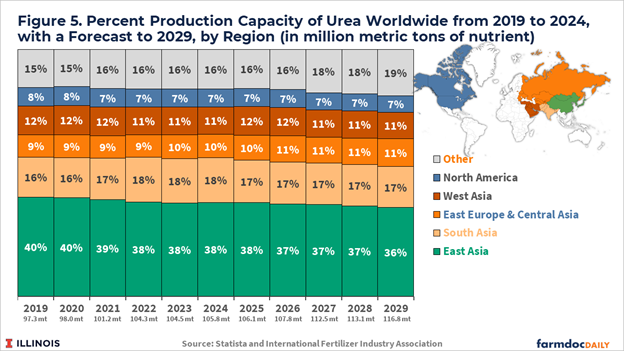 Trung Đông là nguồn cung cấp khí đốt tự nhiên chính, một nguyên liệu đầu vào trong sản xuất phân bón nitơ. Khoảng 10% lượng urê của thế giới được sản xuất tại Trung Đông. Bất ổn ở Trung Đông có thể ảnh hưởng lớn đến phân bón nitơ và phốt-phát.