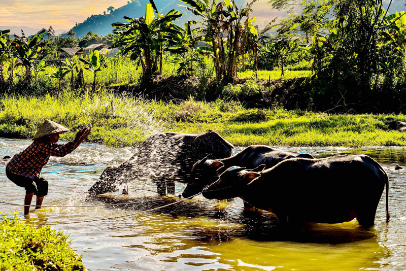 Các hộ nông dân Chiêm Hóa khẳng định nuôi trâu rất dễ, ai cũng có thể nuôi được, thường thì mỗi nhà nuôi từ một đến vài con. Bên cạnh việc tận dụng các thức ăn phụ phẩm trong nông nghiệp như lá ngô, mía, rơm, cám, thì việc chăn thả bán hoang dã cũng giúp trâu tăng trưởng tốt. Chị Hoàng Thị Huệ, thôn An Phong, xã Tân Thịnh (Chiêm Hóa) trước kia là một hộ khó khăn của thôn. Sau khi được ngân hàng huyện cho vay vốn ưu đãi, chị mua trâu sinh sản về nuôi. Từ một con trâu ban đầu, đến nay tổng đàn trâu nhà chị lên 5 con. Bên cạnh có sức trâu để cày bừa, giảm chi phí sản xuất, gia định chị Huệ còn có nguồn phân bón thường xuyên để canh tác. Theo chị Huệ nuôi trâu không “ăn vào kinh tế” gia đình, mà còn tận dụng được lao động nông nhàn. Với giá bán từ 20 – 40 triệu đồng một con trâu trưởng thành, đàn trâu cũng giúp gia đình chị thoát nghèo.