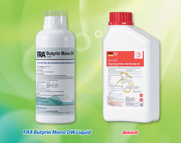 Việc kết hợp Amivit và FRA Butyrin Mono DW Liquid tạo nên một cơ chế bổ trợ rõ ràng: dinh dưỡng dễ tiêu và năng lượng nhanh đi cùng với đường ruột khỏe mạnh. Sự phối hợp này giúp gà con ăn khỏe, tiêu hóa tốt, vượt qua an toàn giai đoạn úm và hình thành nền tảng vững chắc để phát huy tối đa tiềm năng tăng trưởng trong các giai đoạn nuôi tiếp theo.