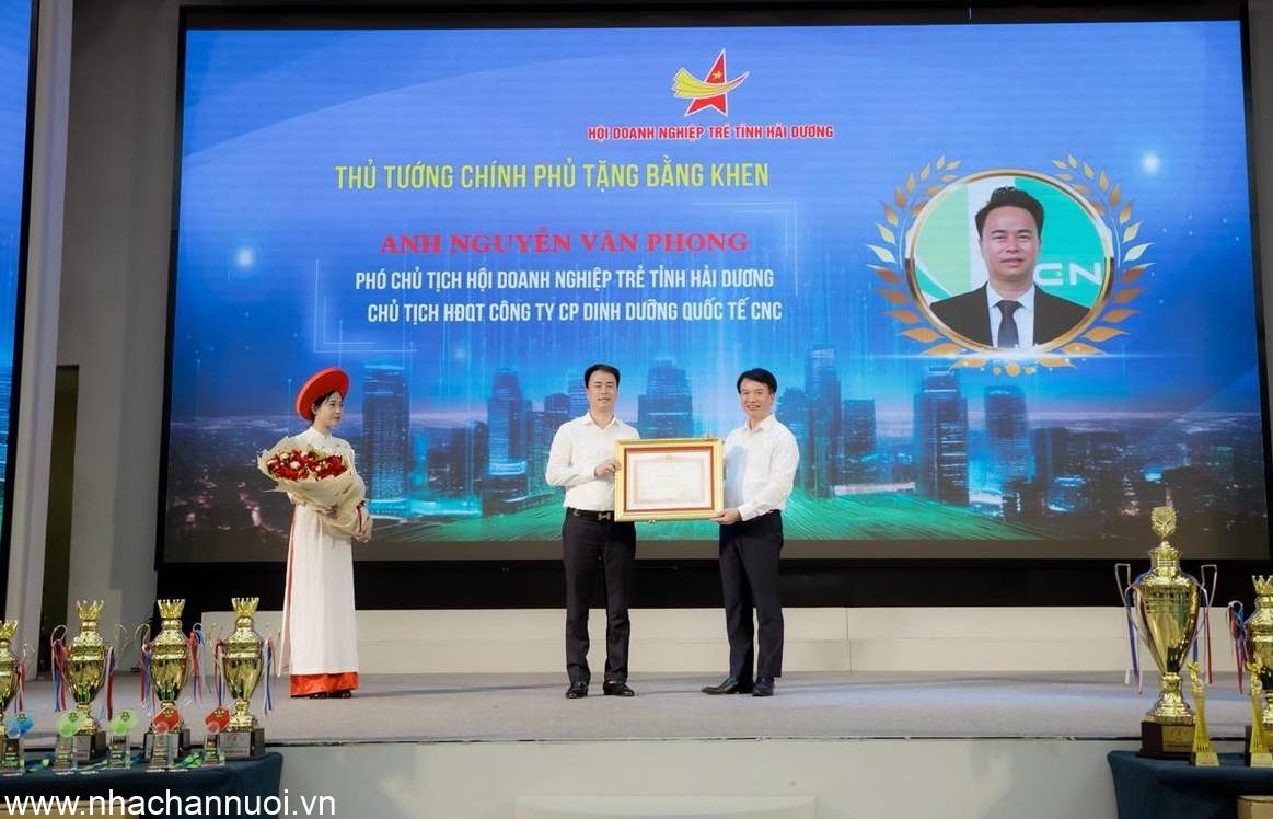 Doanh nhân Nguyễn Văn Phong – Chủ tịch HĐQT, Tổng giám đốc Công ty Cổ phần Dinh dưỡng Quốc tế CNC được vinh danh trong TOP 30 Giải thưởng Sao Đỏ 2025, ghi nhận những nỗ lực đổi công nghệ và đóng góp nổi bật cho ngành thức ăn chăn nuôi Việt Nam.