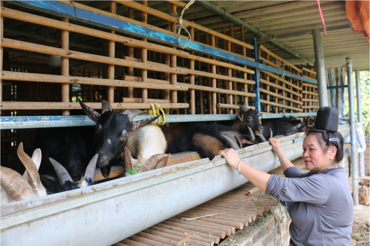 Đến bản Công Mường, thăm gia đình chị Lường Thị Khôn, có tiếng “mát tay” trong nuôi dê và là đầu mối tiêu thụ dê thịt cho hộ chăn nuôi trong xã. Hằng tháng, gia đình chị lựa chọn xuất khoảng 7 – 10 con dê thịt (35 – 40kg/con) cho thương lái trong và ngoài tỉnh; thu hơn 400 triệu đồng/năm. Hiện nay, gia đình tiếp tục đầu tư mở rộng chuồng nuôi dê quy mô lớn, tạo việc làm cho lao động tại chỗ.