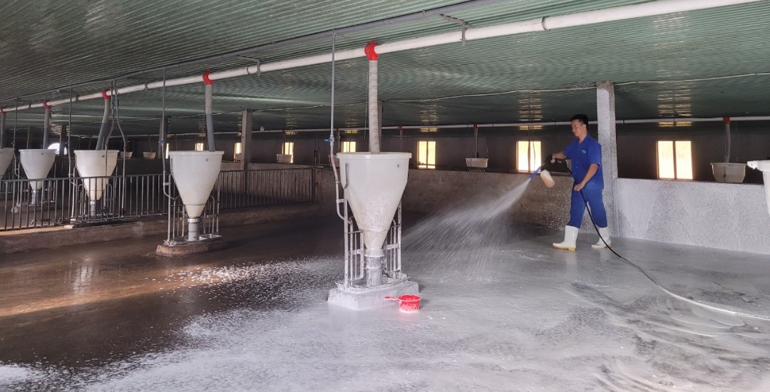 - Tổ chức tổng vệ sinh, phun thuốc sát trùng tại các cơ sở chăn nuôi nông hộ, bãi chăn thả, địa điểm thu gom động vật sống và sản phẩm động vật để buôn bán, kinh doanh; khu vực từng có dịch, nơi chôn lấp, xử lý tiêu hủy động vật mắc bệnh, sản phẩm động vật mang mầm bệnh; khu vực thu gom, xử lý chất thải của động vật,… Việc phun khử trùng được thực hiện sau khi vệ sinh cơ giới như: quét dọn, cọ, rửa sạch, phát quang,…