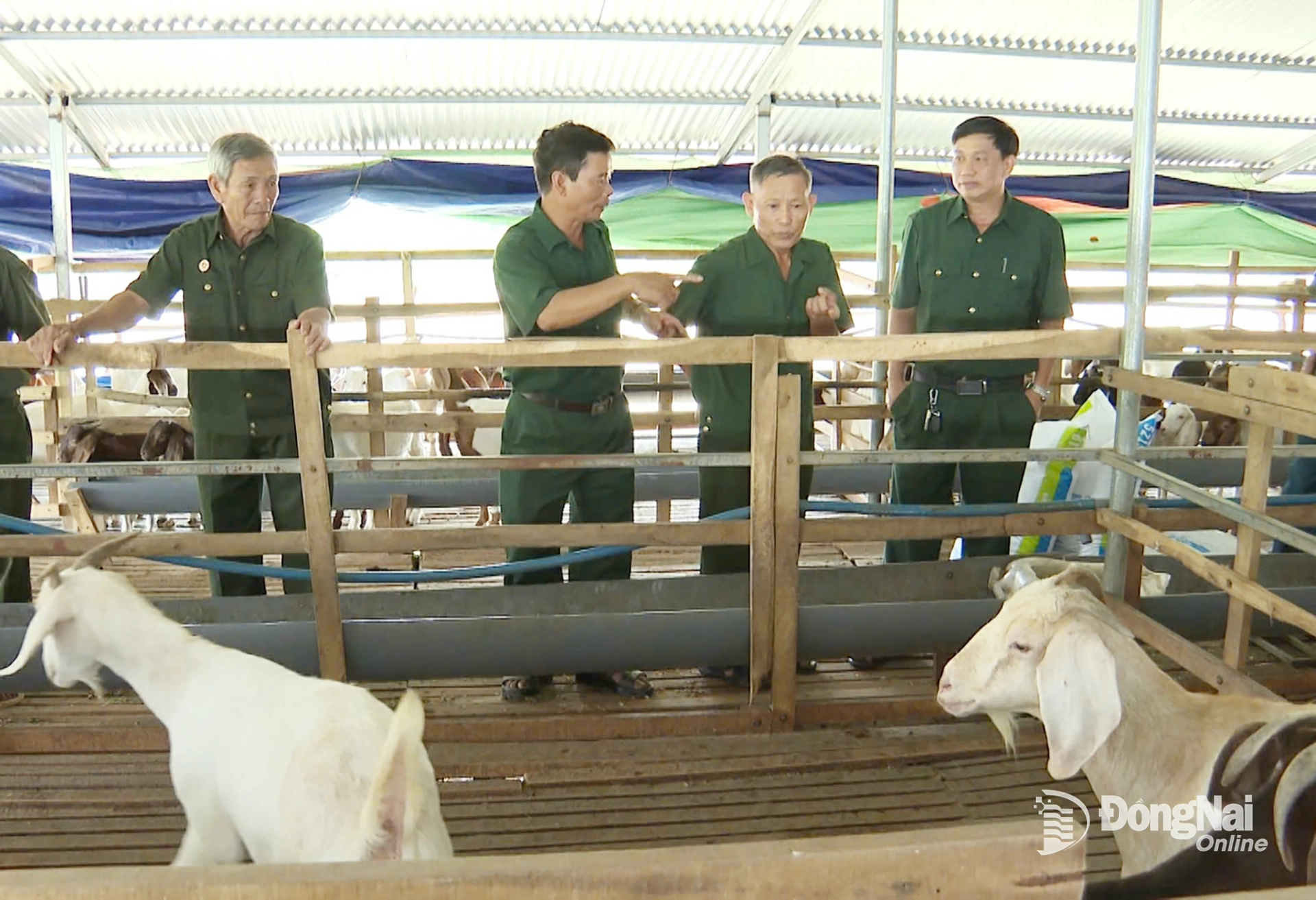 Hội viên cựu chiến binh xã Xuân Lộc tham quan trại dê ông Lê Xuân Điềm. Ảnh Đặng Hùng