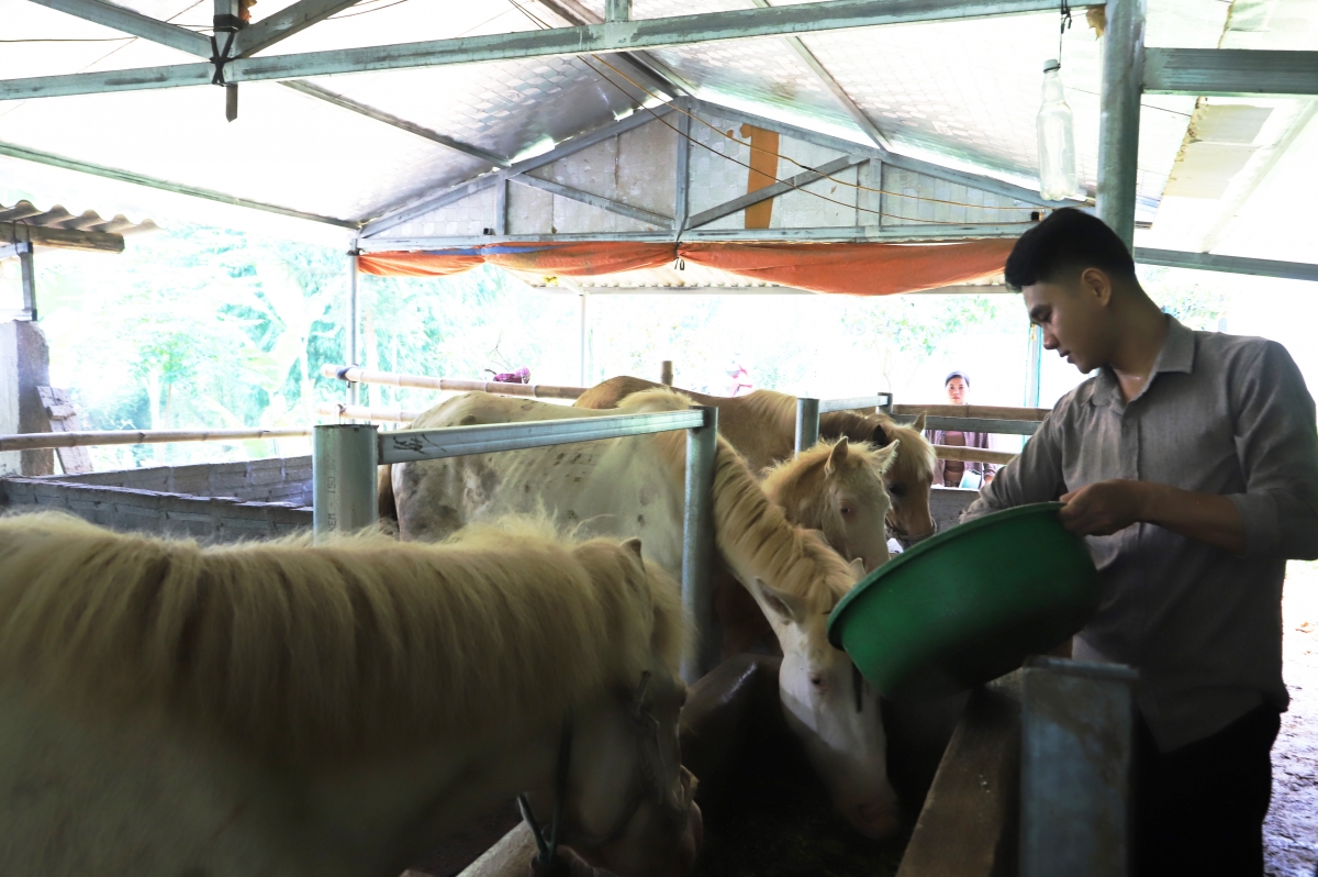 Từ năm 2024, qua tìm hiểu thị trường, anh Thành nhận thấy ngựa bạch là giống ngựa quý, thị trường tiêu thụ ổn định nên anh đã vay Ngân hàng Nông nghiệp và Phát triển nông thôn huyện 150 triệu đồng để mua 2 cặp giống tại tỉnh Bắc Kạn và đầu tư hệ thống chuồng trại chăn nuôi ngựa bạch. Nhờ mày mò nghiên cứu các tài liệu kỹ thuật về chăn nuôi và phòng trị dịch bệnh trên đàn ngựa; những đặc tính của riêng ngựa bạch. Sau gần 2 năm đến nay đàn ngựa giống đã sinh sản được một chú ngựa con khỏe mạnh phát triển tốt.