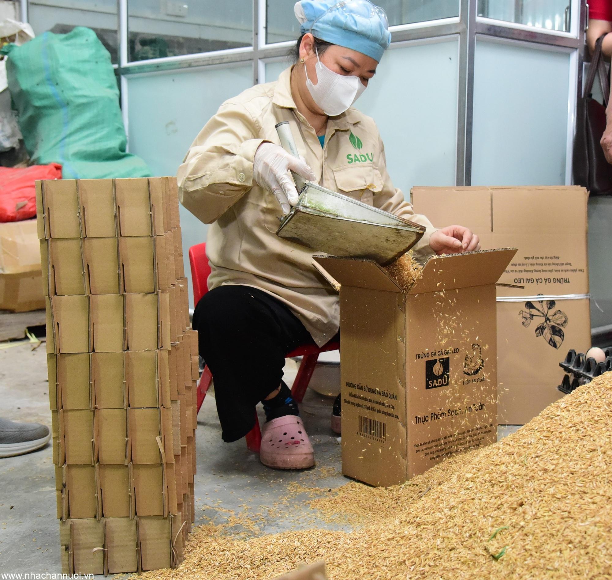 Để vận chuyển đi xa, trứng gà được HTX sử dụng trấu – nguyên liệu thân thiện với môi trường để lót trứng