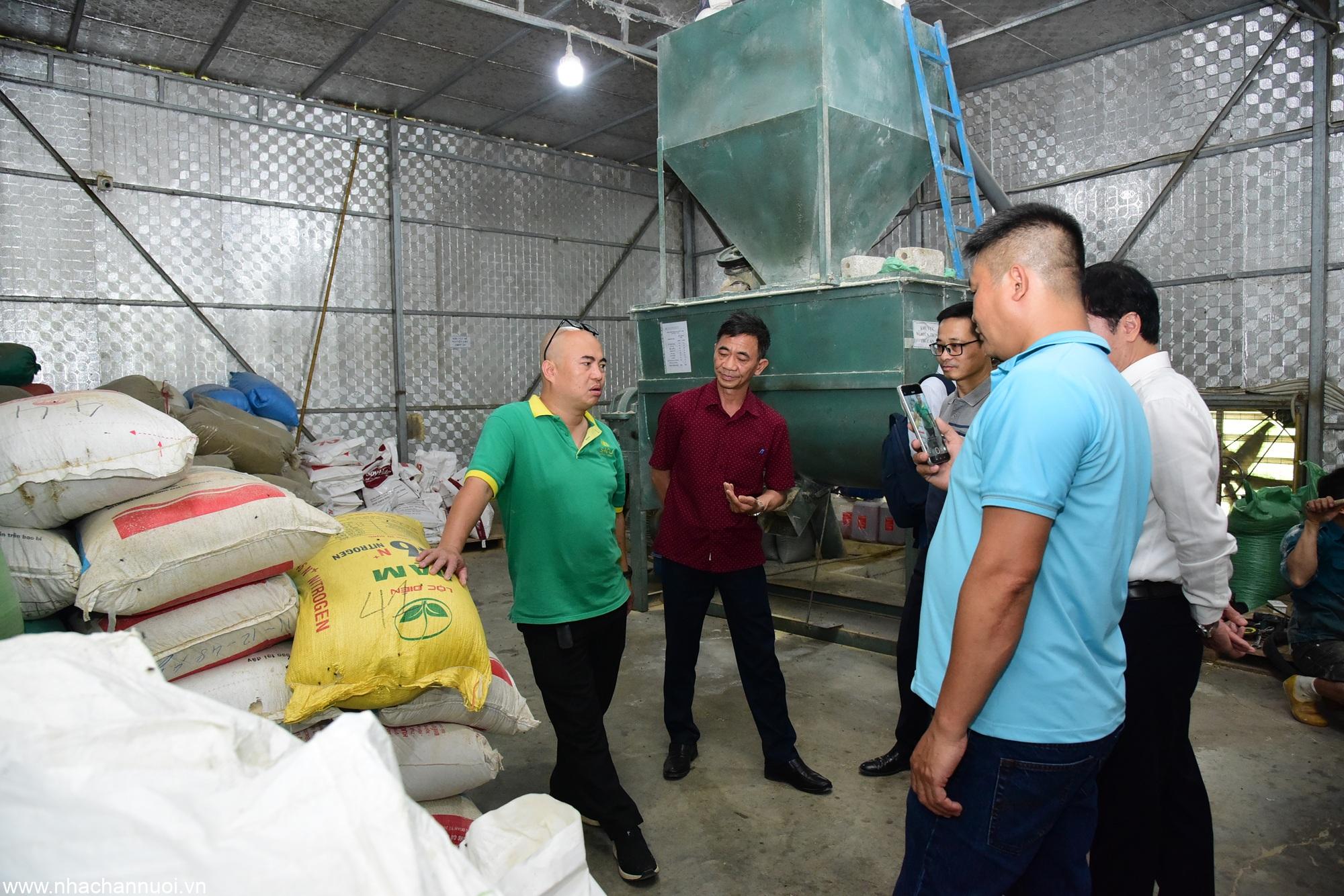Ông Phan Trung Kiên – Đại diện Hợp tác xã Nông nghiệp Công nghệ cao Kiên Cà (áo xanh) chia sẻ với TS. Nguyễn Xuân Dương – Chủ tịch Hội Chăn nuôi Việt Nam, TS. Nguyễn Ngọc Sơn, Phó Chủ tịch Hội Chăn nuôi Việt Nam