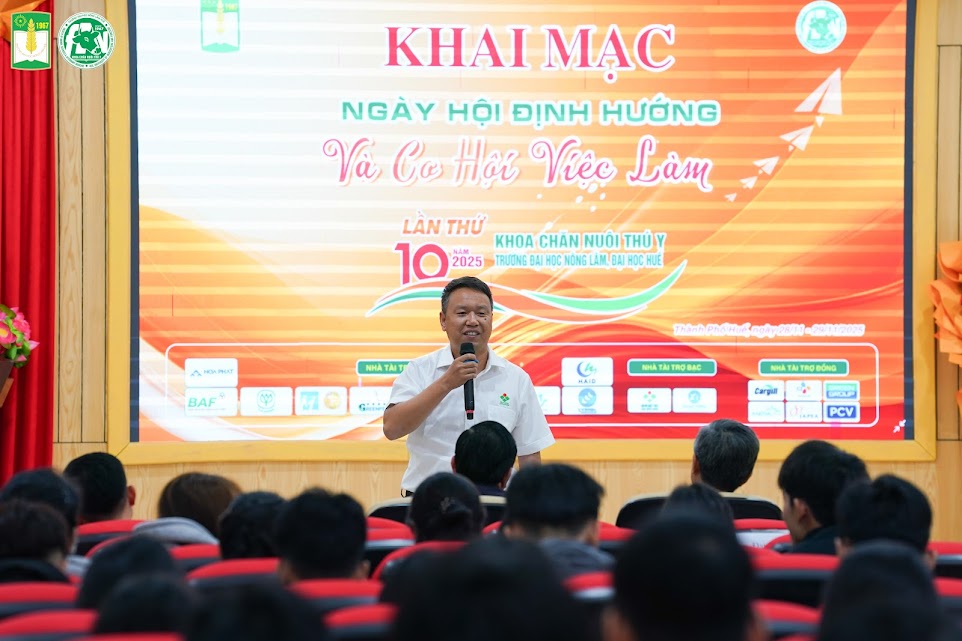 Ngày 29/11/2025, Khoa Chăn nuôi Thú y (Trường Đại học Nông Lâm – Đại học Huế) đã khai mạc Ngày hội Định hướng và Cơ hội việc làm lần thứ 10, sự kiện thường niên nhằm hỗ trợ sinh viên tiếp cận thông tin nghề nghiệp, kết nối doanh nghiệp và mở rộng cơ hội tuyển sinh – đào tạo theo nhu cầu thực tiễn.