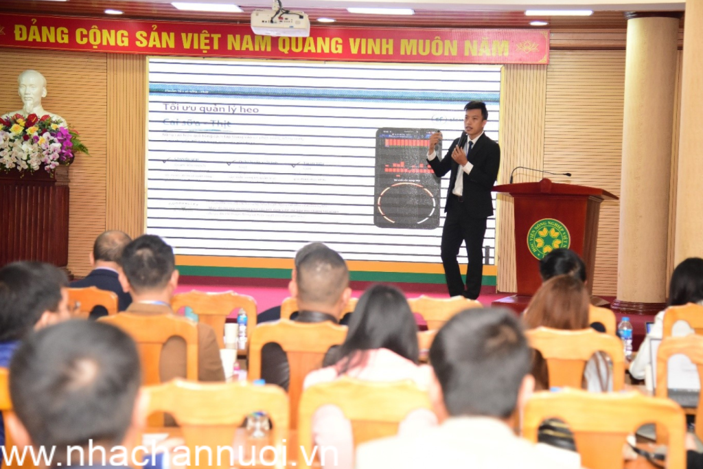 Tại hội thảo, ba doanh nghiệp gồm Cloudfarm, IMV và Megavet đã trình bày các tham luận chuyên sâu về những sản phẩm công nghệ cao phục vụ ngành chăn nuôi lợn.