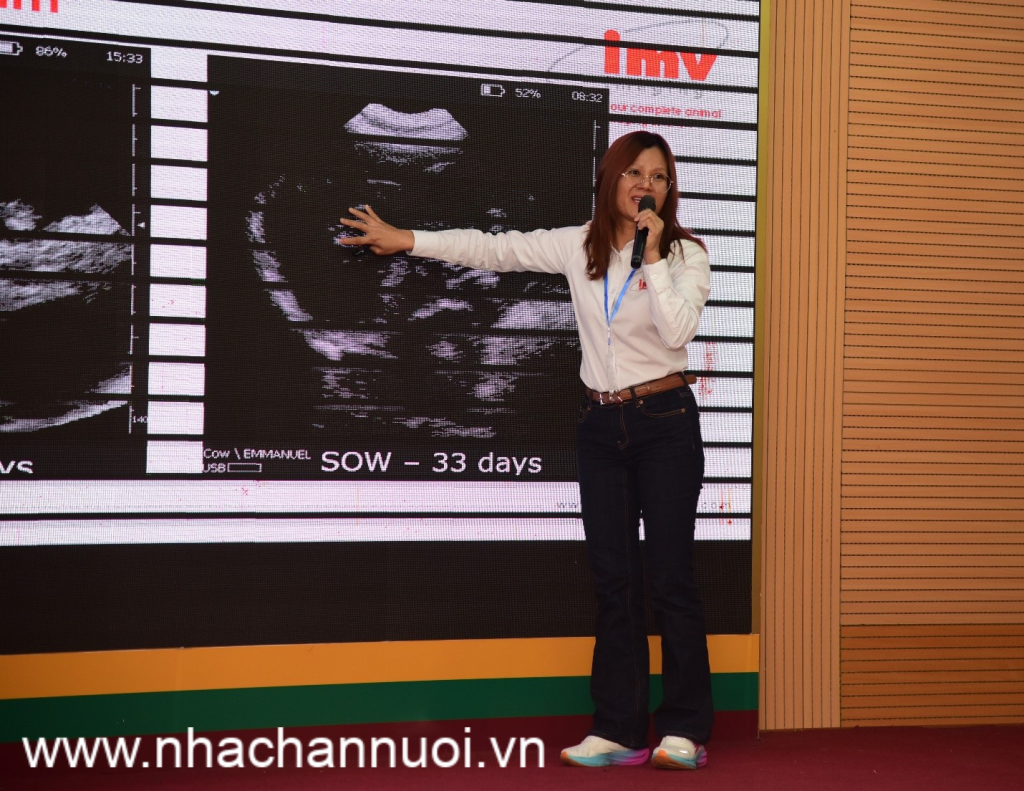 Trong bài trình bày “Ứng dụng máy siêu âm để chẩn đoán mang thai sớm trên heo”, bà Bùi Thị Kiều – Quản lý kinh doanh Khu vực IMV, nhấn mạnh tầm quan trọng của việc chẩn đoán mang thai sớm nhằm tối ưu hóa số ngày heo nái sản xuất, giảm số ngày heo nái không mang thai, qua đó tiết kiệm nhân công, thời gian, chi phí sản xuất và diện tích chuồng trại. Theo bà Kiều, IMV Technologies hiện là thương hiệu dẫn đầu trong các công nghệ đột phá liên quan đến thiết bị phòng tinh, thiết bị phối giống và thiết bị hình ảnh phục vụ chăn nuôi heo.