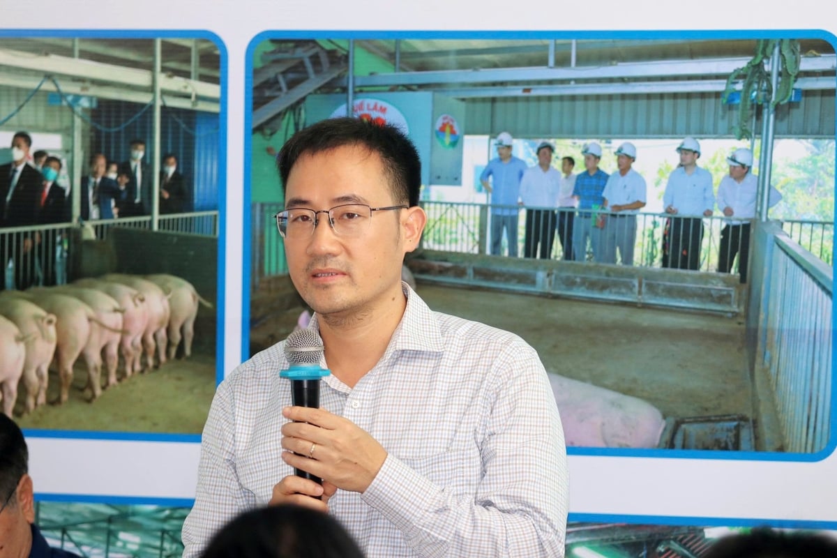 Ông Khắc Ngọc Bá, Phó Tổng Giám đốc Tập đoàn Quế Lâm khẳng định, giải pháp chăn nuôi an toàn sinh học góp phần phòng chống dịch tả lợn Châu Phi hiệu quả. Ảnh: Thanh Nga