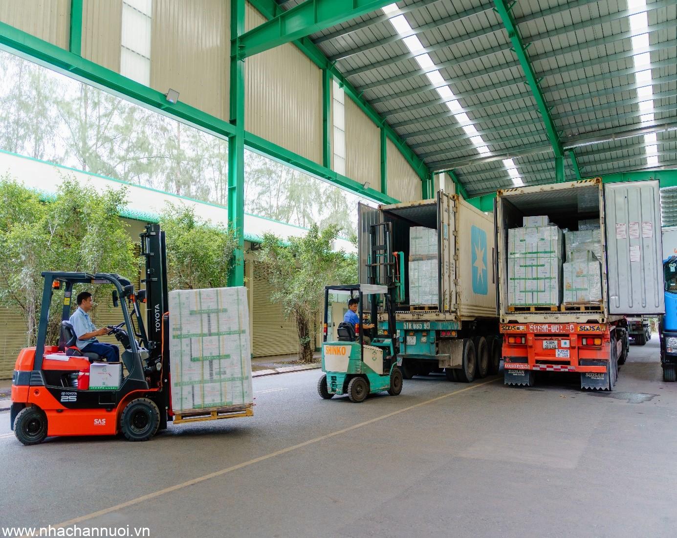 Hàng hóa Vemedim được xếp lên container tại Delivery Center, chuẩn bị đơn hàng xuất khẩu sang nhiều quốc gia trên thế giới