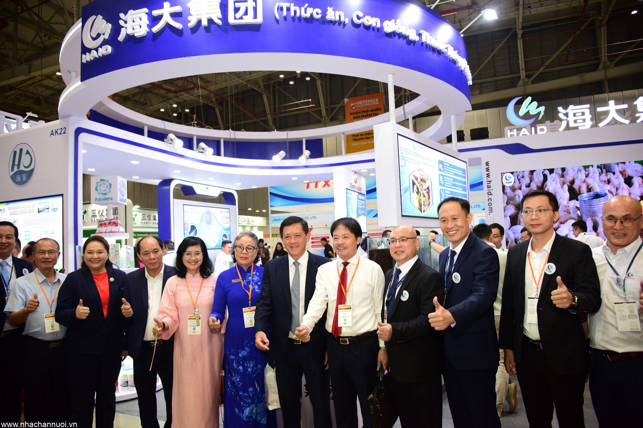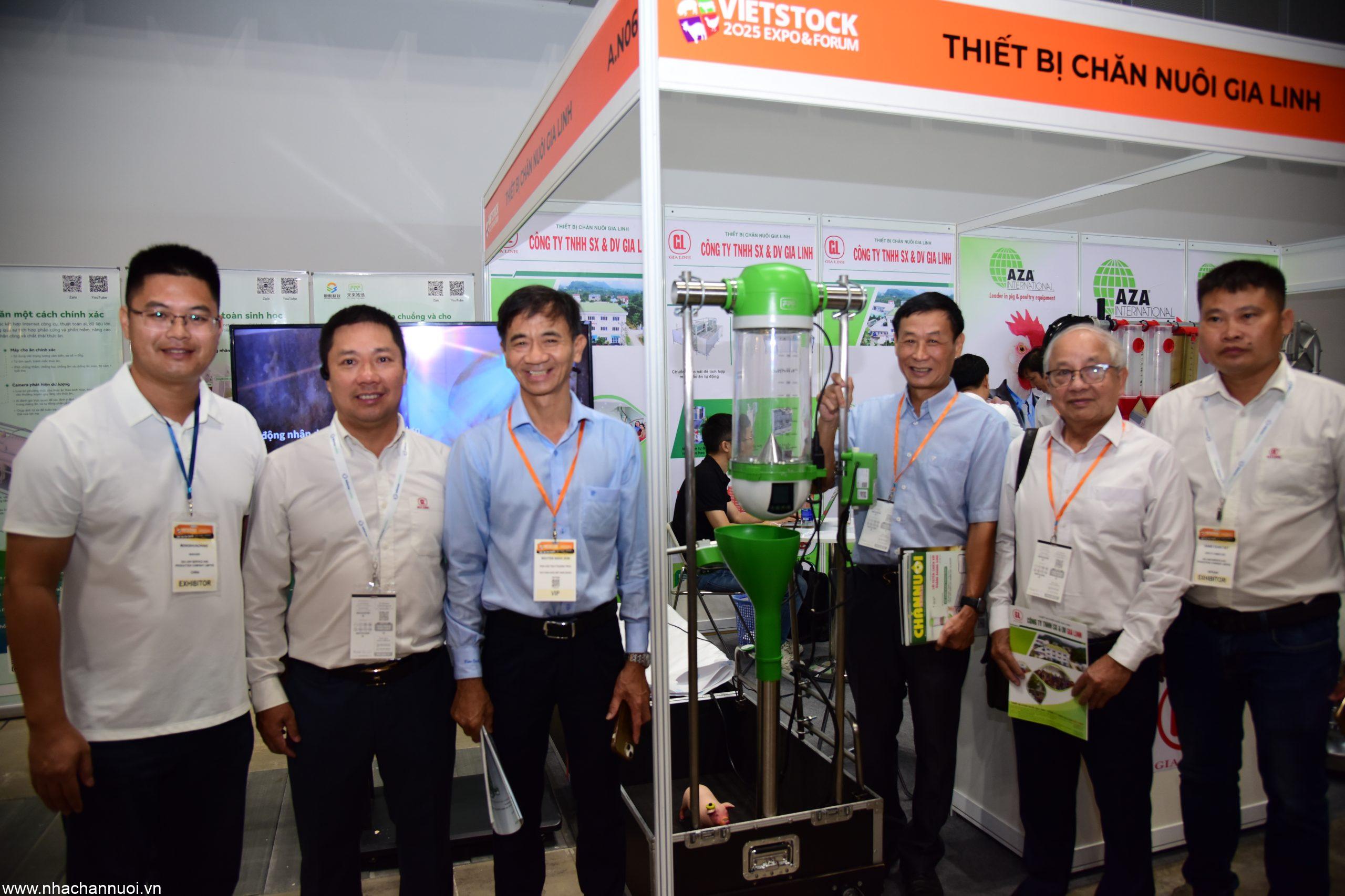 Lãnh đạo Hội Chăn nuôi Việt Nam tại gian hàng Công ty Gia Linh – doanh nghiệp sản xuất thiết bị chăn nuôi tiêu biểu nhất của Việt Nam trưng bày nhiều sản phẩm thiết bị chăn nuôi mới.