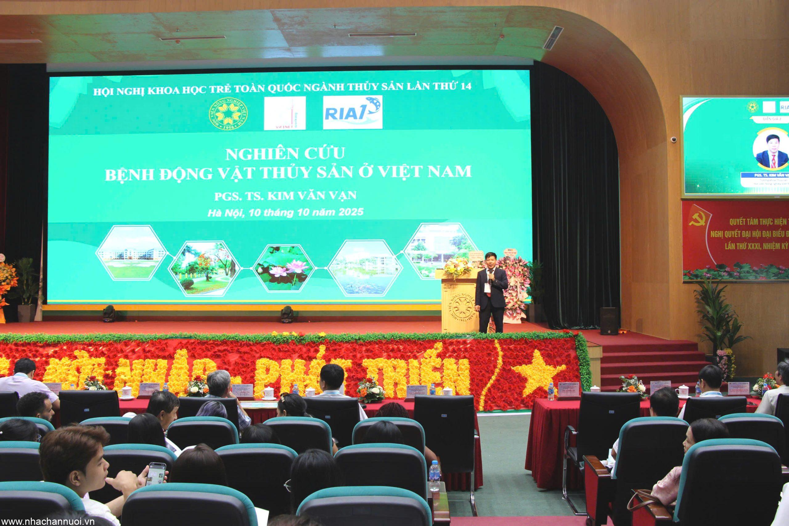 Tiếp đó, PGS.TS Kim Văn Vạn trình bày báo cáo về “Hiện trạng nghiên cứu bệnh động vật thủy sản tại Việt Nam”, trong đó nêu bật các thách thức trong kiểm soát dịch bệnh, đồng thời giới thiệu những tiến bộ đáng kể trong điều trị bệnh bằng vaccine, chiết xuất thảo dược và ứng dụng Phage. Những hướng nghiên cứu này không chỉ góp phần giảm thiểu thiệt hại trong nuôi trồng mà còn góp phần nâng cao năng lực tự chủ công nghệ trong ngành.