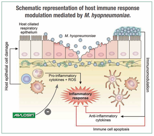 Mycoplasma hyopneumoniae được biết đến là vi khuẩn gây ra bệnh viêm phổi địa phương, nó là mầm bệnh tiên phát ảnh hưởng đến đường hô hấp với triệu chứng ho, bệnh gây thiệt hại kinh tế nặng nề với việc làm giảm ADG, tăng FCR và tăng chi phí thuốc điều trị. Bệnh gây thiệt hại ước tính khoảng 5.84 USD/heo đối với những đàn bị nhiễm bệnh. Bệnh gây ảnh hưởng đến tất cả các lứa tuổi khác nhau của heo và phổ biến trên heo thịt. Mycoplasma hyopneumoniae là một trong những mầm bệnh tiên phát gây ra hội chứng hô hấp phức hợp (PRDC) cùng với một số vi khuẩn và virus khác. Nó có thể điều chỉnh và/hoặc né tránh phản ứng miễn dịch của cơ thể. Do đó, các tổn thương phổi được phát hiện khi mổ khám có thể là kết quả của tình trạng viêm nhiễm không kiểm soát được do khả năng làm thay đổi phản ứng miễn dịch của các vi khuẩn này. Việc tối ưu hóa quản lý trang trại, tiêm vaccine và sử dụng thuốc kháng sinh là biện pháp cần thiết để kiểm soát và loại bỏ Mycoplasma hyopneumoniae. Các loại kháng sinh phù hợp bao gồm nhóm Macrolide, pneuromutilin, fluoroquinolone, lincosamide, tetracyline, amphenicol và aminoglycoside.